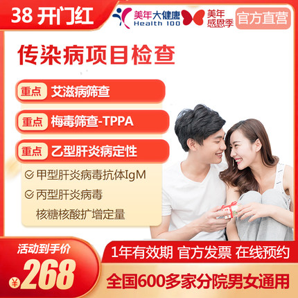 美年大健康 传染病四项多项目检查 男女通用在线预约 体检套餐