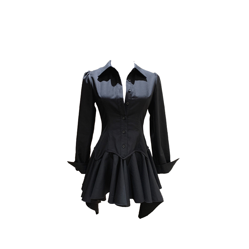 大码胖mm纯欲风辣妹翻领衬衫连衣裙女秋季新款性感收腰a字短裙女
