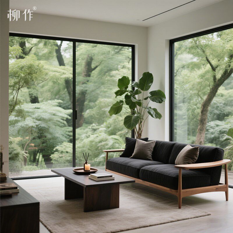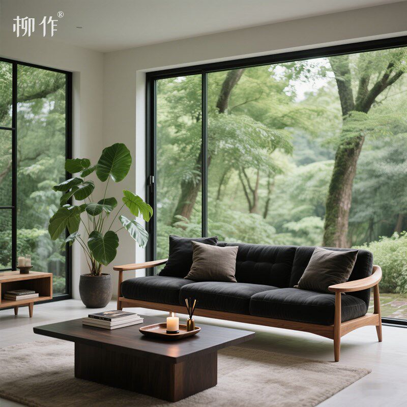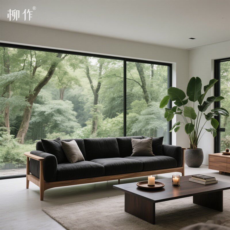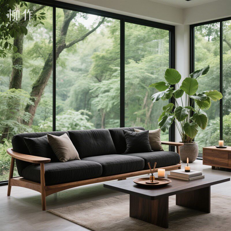 柳作新中式实木沙发客厅别墅意式轻奢设计师直排大沙发三人位皮艺