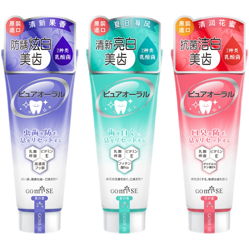 日本秘素GOMISE乳酸菌牙膏美白去牙黑牙黄去口臭清新口腔护理含氟