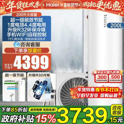 海尔统帅空气能热水器200升A7落地式家商用理发店大容量储水式GB