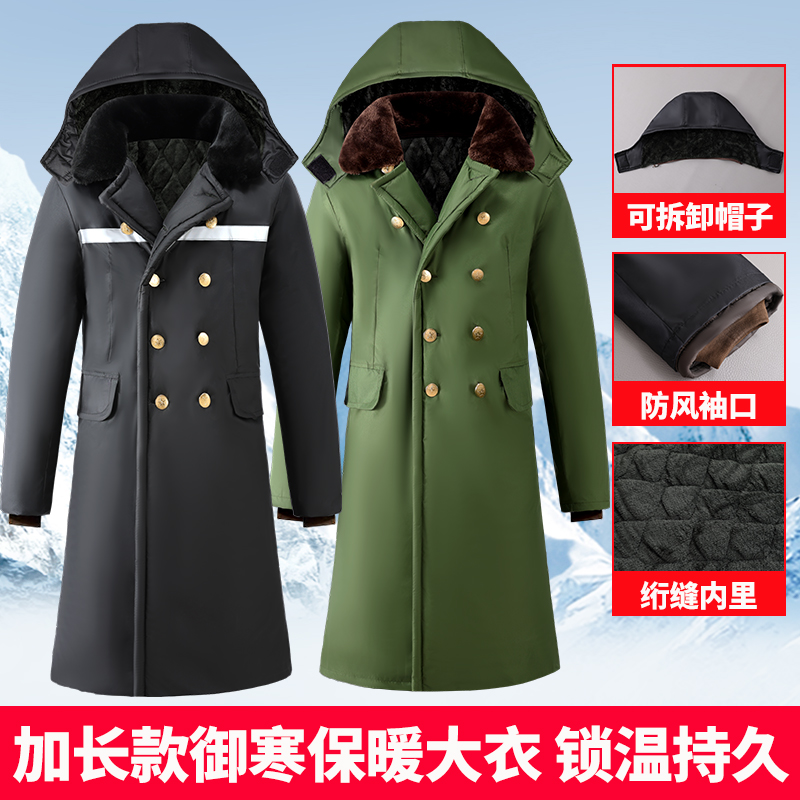 冬季防水军棉大衣长款过膝冷库棉服活里活面可拆卸特厚北极绒加厚