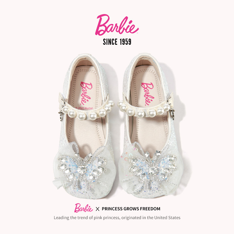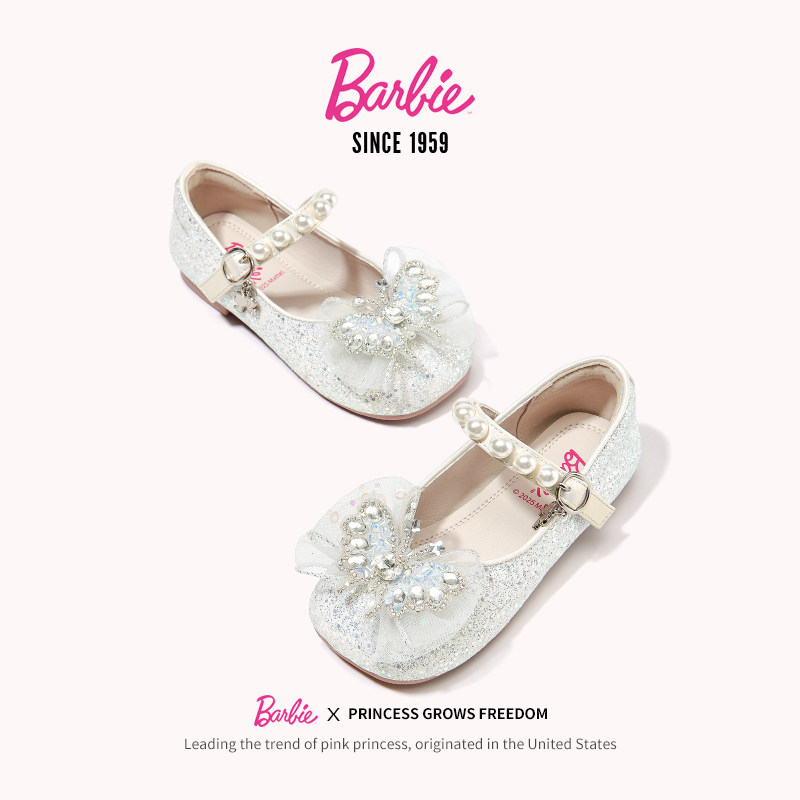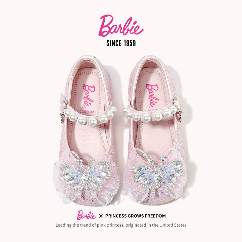 芭比童鞋女童公主鞋2025新款春秋小女孩水晶鞋软底公主鞋儿童单鞋