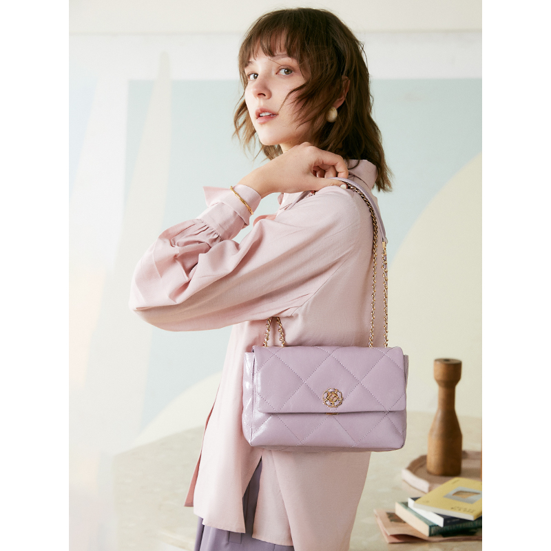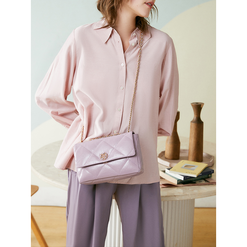 伊米妮小香风云朵包链条包菱格新款真皮牛皮包包单肩斜挎包包