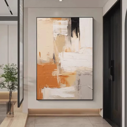 MHD纯手绘油画设计现代装饰画客厅挂画简约肌理玄关竖版沙发油画