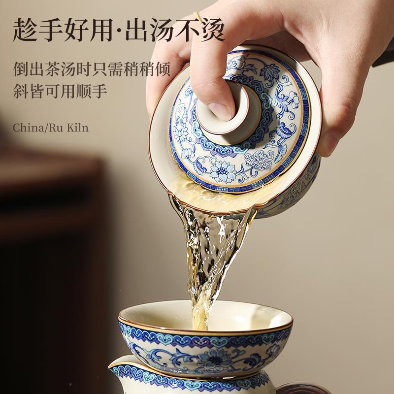 汝窑功夫茶具套装家用泡茶壶茶杯轻奢高档中式2025新款陶瓷送长辈