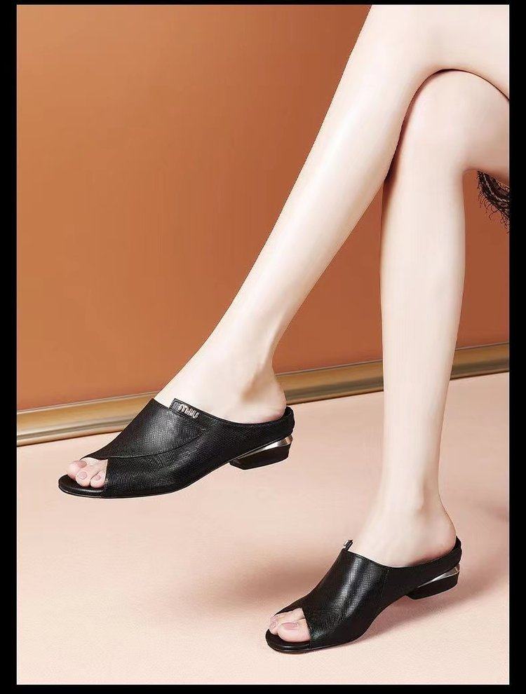 大东妞品牌断码清仓真皮凉拖鞋包头半拖鞋女外穿时尚2023年新款夏