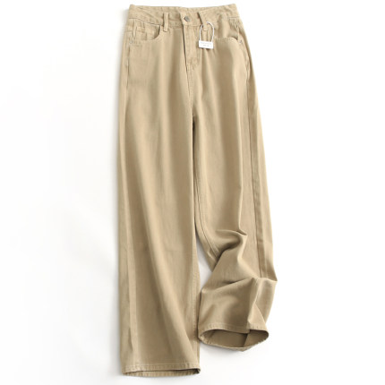 纯棉柔软舒适高腰宽松直筒裤2024秋新款阔腿裤拖地女裤牛仔裤G027