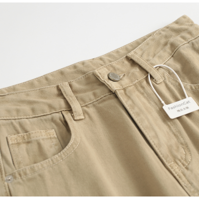 纯棉柔软舒适遮肉高腰宽松牛仔裤