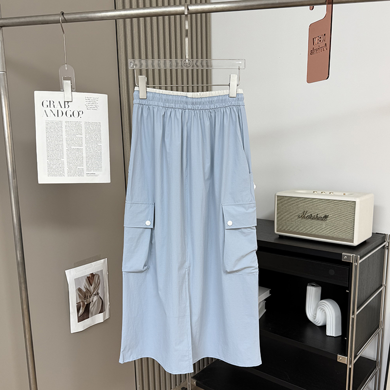 山系户外!抽绳松紧腰轻薄透气中长款后开叉速干工装半身裙长裙女