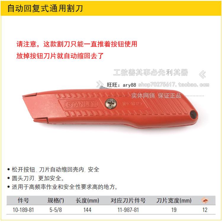 正品 STANLEY/史丹利工具 10-189-81 自动回复式通用割刀