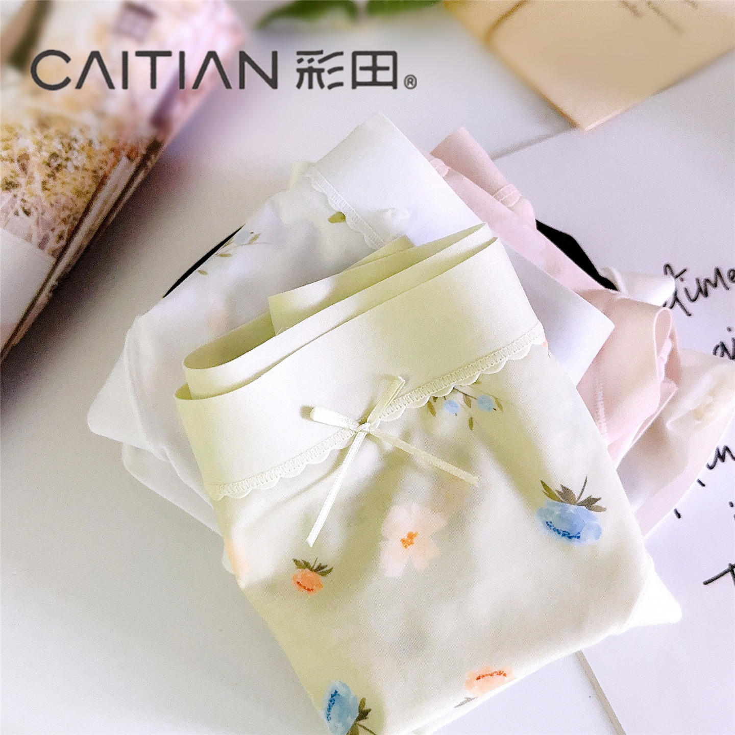 彩田冰丝女内裤性感2025新款时尚印花女士纯棉石墨烯透气大码短裤