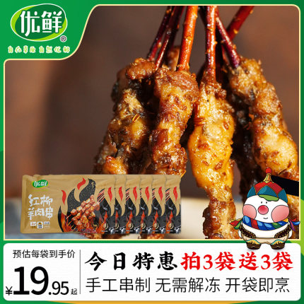 【拍3发6】优鲜清真红柳枝羊肉串180g/袋半成品户外烧烤大串