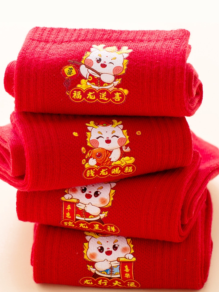 浪莎本命年袜子女红袜子纯棉中筒袜马年结婚情侣红色男袜男士袜子