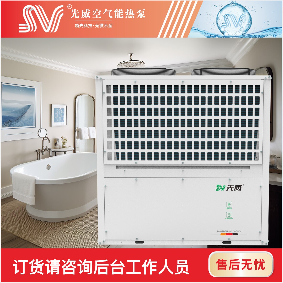 15匹空气能热泵热水机组先威空气能厂家 养殖供暖热泵空气能