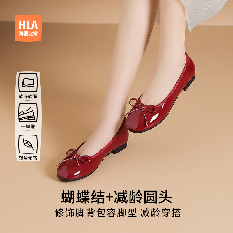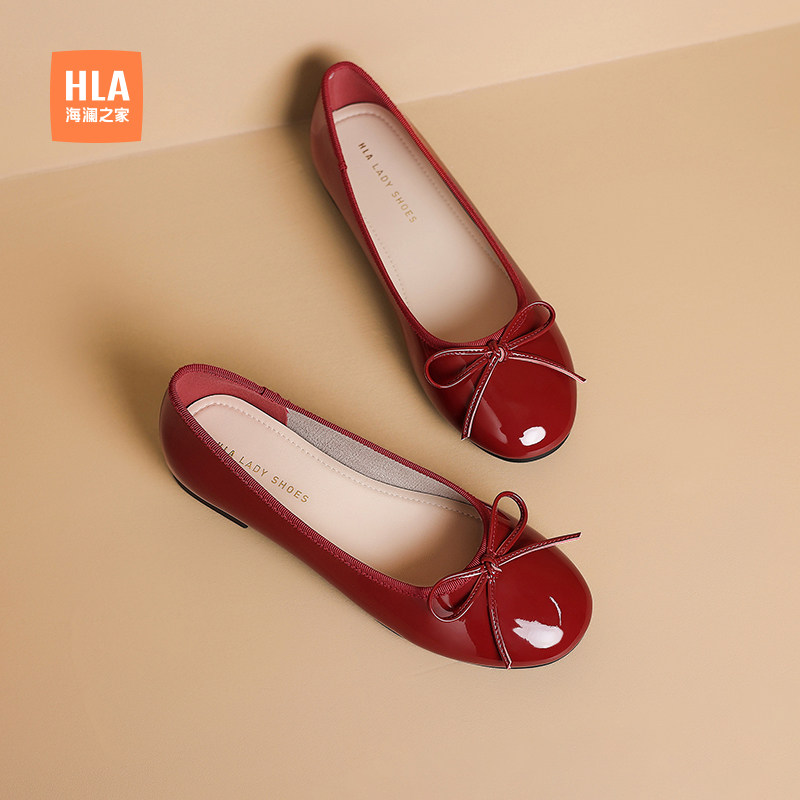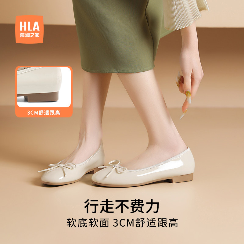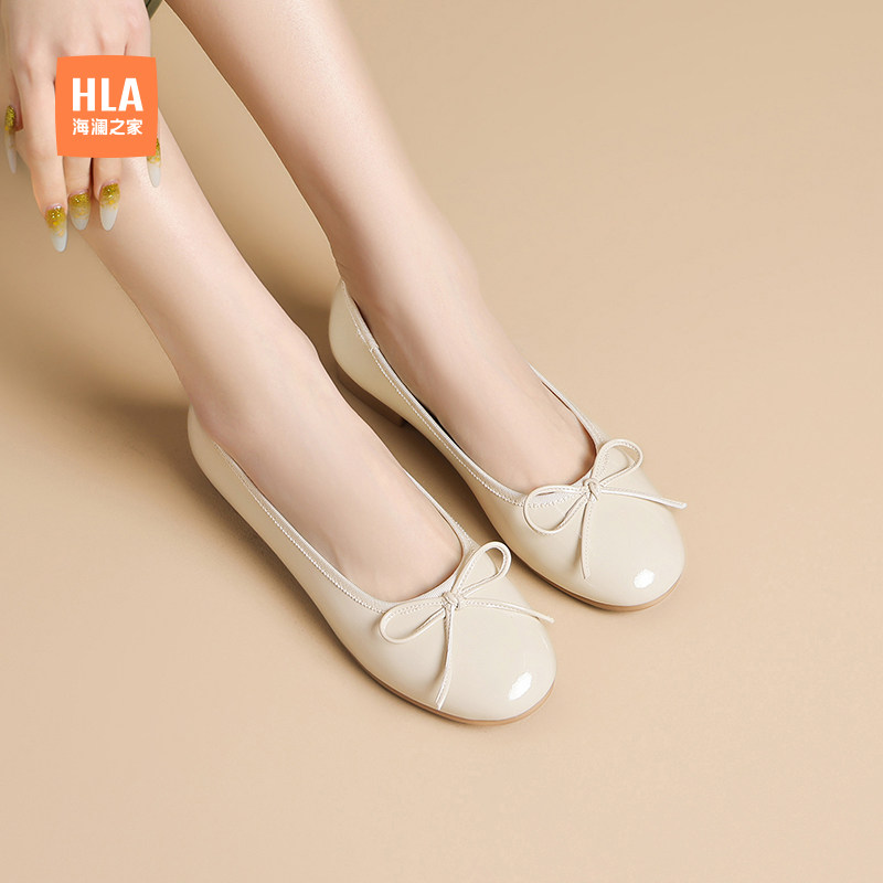 HLA/海澜之家女鞋浅口单鞋女法式平底通勤舒适玛丽珍鞋圆头豆豆鞋