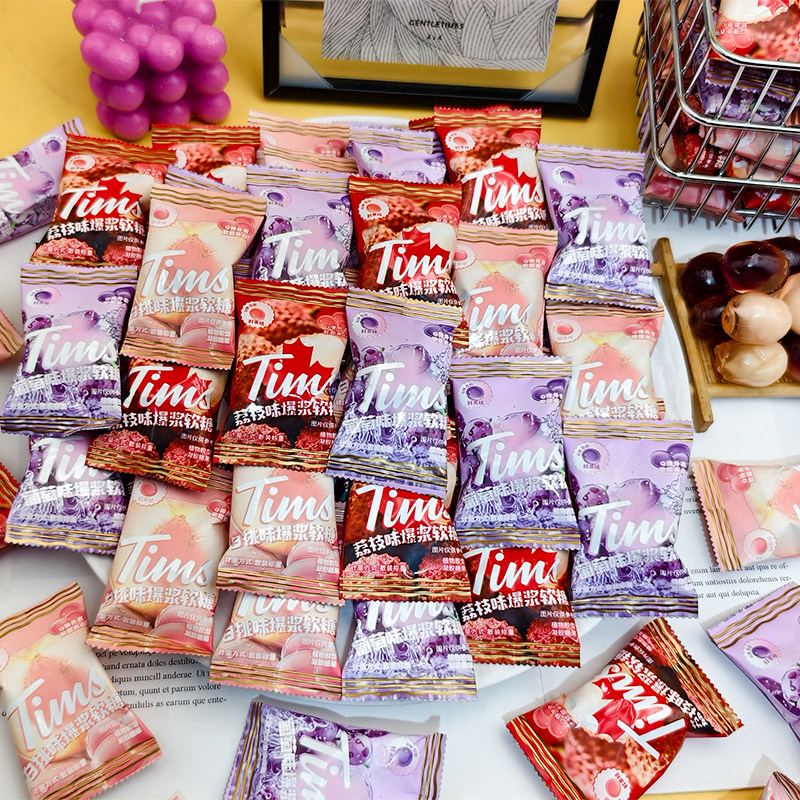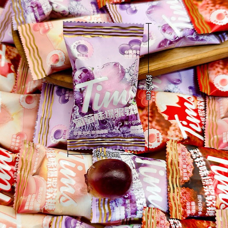 Tims高端品质品牌喜糖果葡萄/荔枝/白桃味爆浆果汁QQ软糖批发喜糖