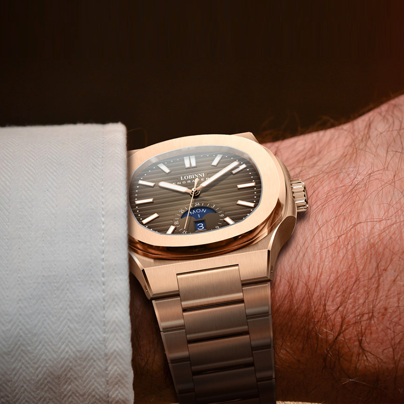 罗宾尼男士机械手表男款自动精钢方形时尚机械表男大表盘男表夜光