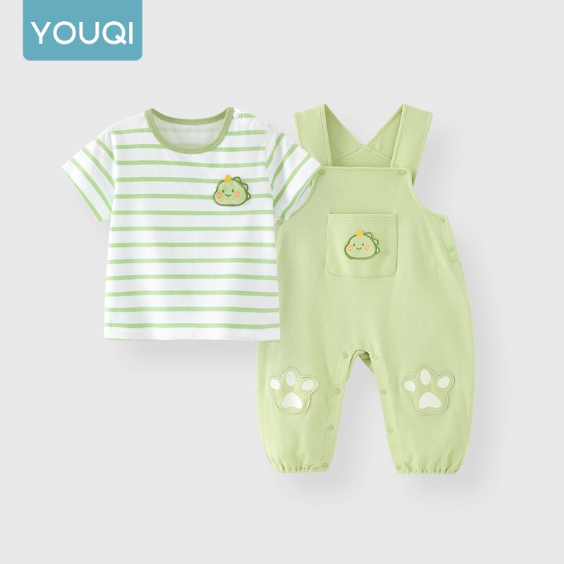 优奇婴儿背带裤宝宝秋装新款连体衣春秋秋季外出服小月龄外出套装
