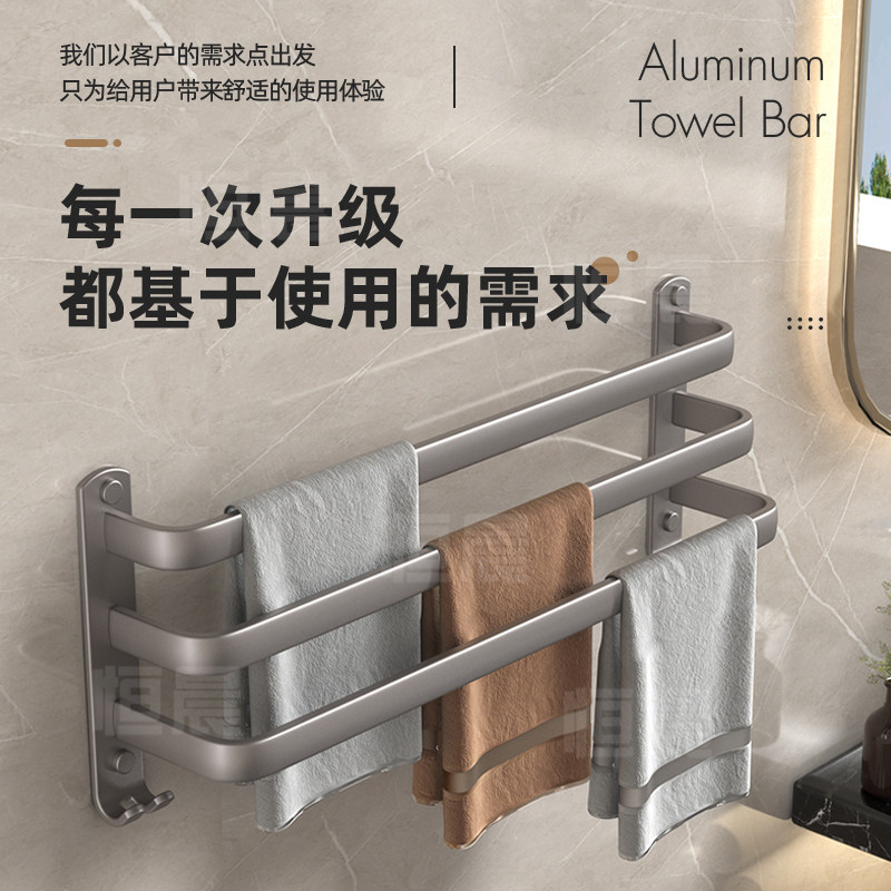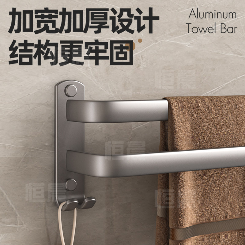 恒晨太空铝免打孔毛巾杆单杆双杆