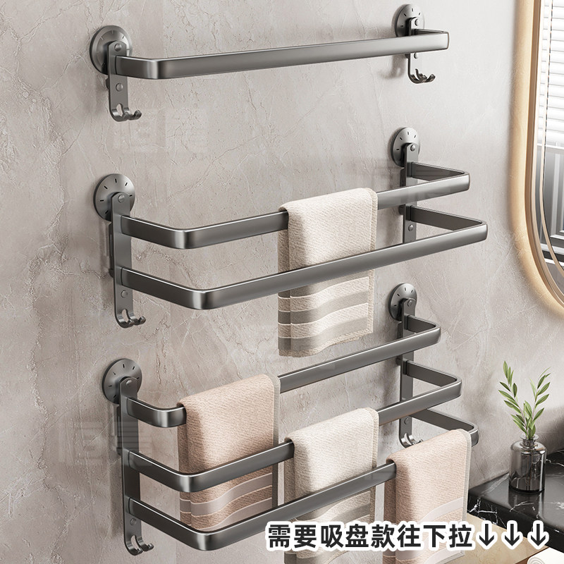 免打孔太空铝毛巾架毛巾杆单双杆卫生间浴巾挂杆浴室挂架置物架子