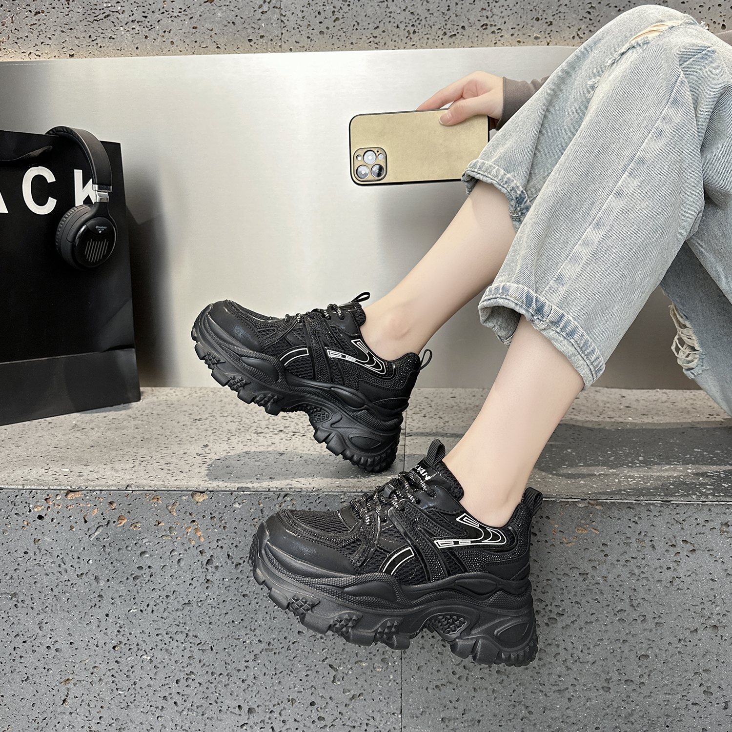 真皮水钻厚底老爹鞋女2025秋新款百搭网红超火松糕增高休闲运动鞋