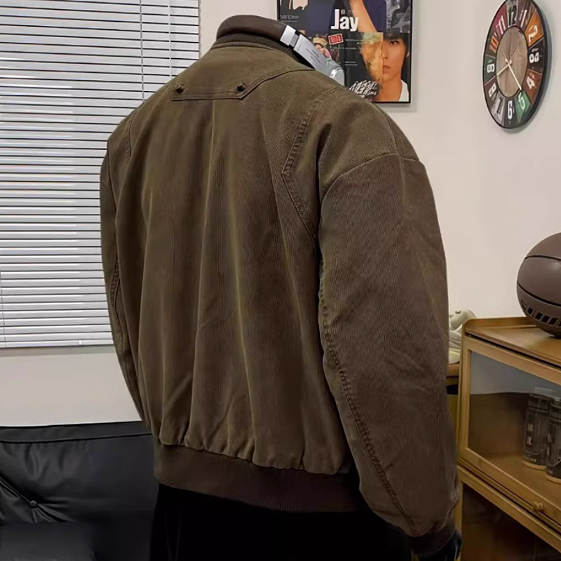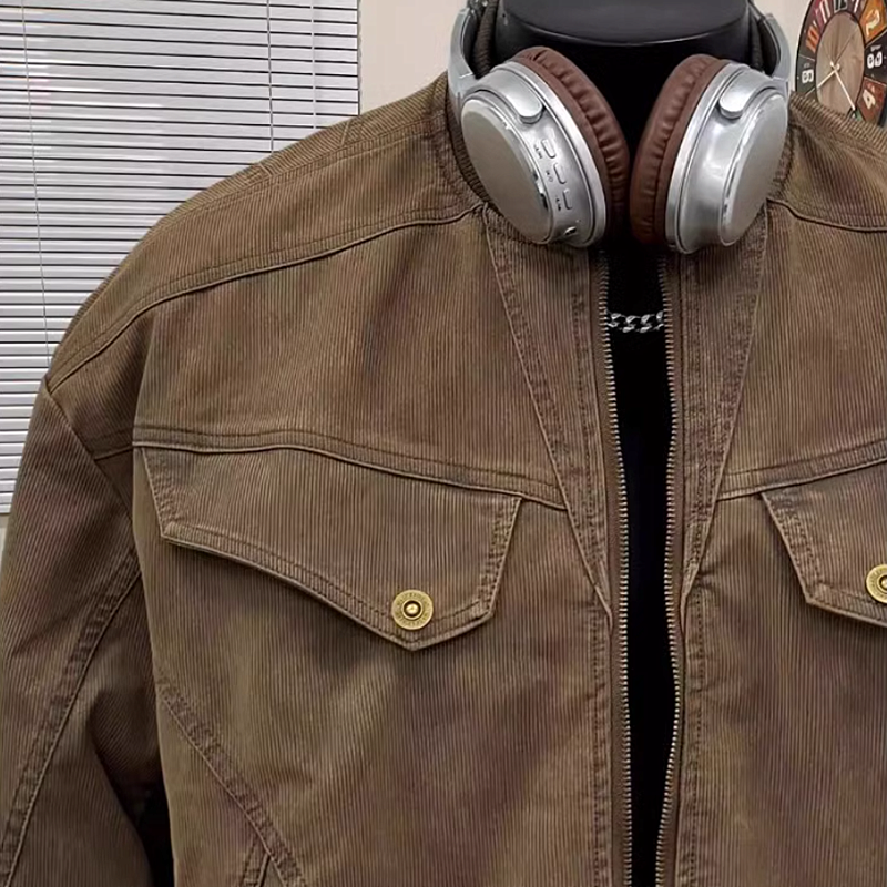 cleanfit棕色廓形短款工装夹克男款春秋季潮牌美式痞帅哈灵顿外套