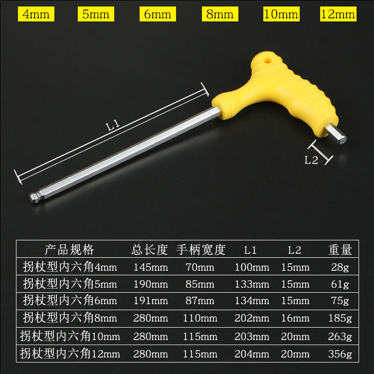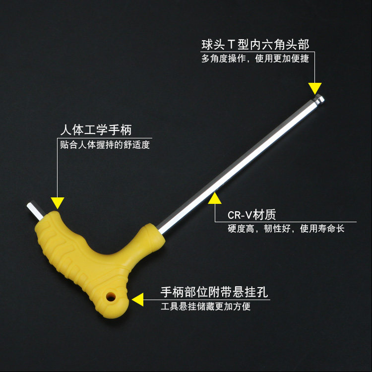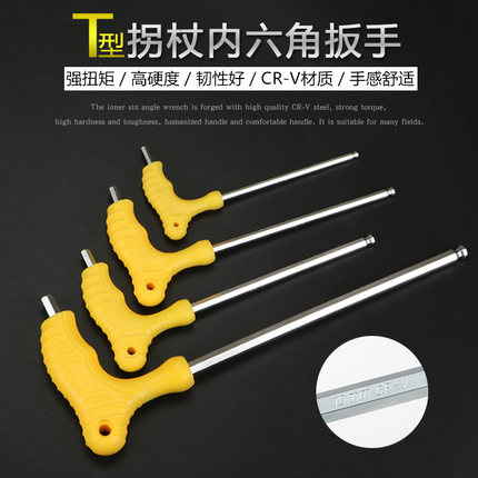 T型球头内六角扳手单支2.5-10mm塑柄加长型公制内六方扳子螺丝刀