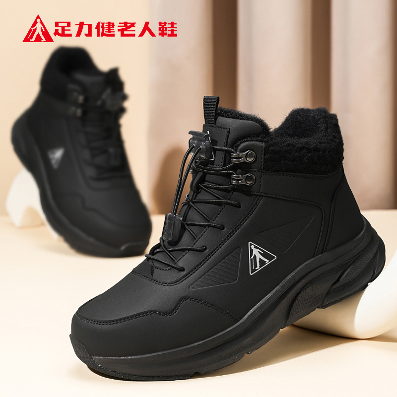 足力健老人鞋旗舰店冬季2025款东北雪地靴棉鞋加绒加厚保暖爸爸鞋