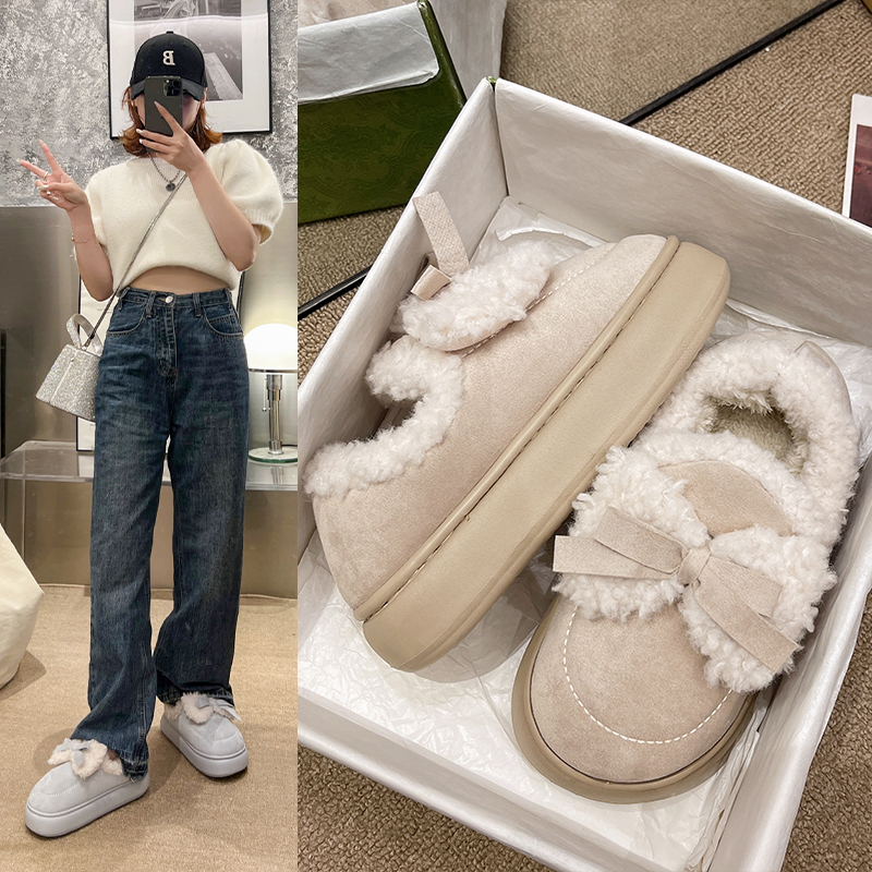 可爱蝴蝶结防滑厚底包跟棉拖鞋