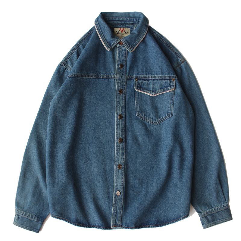 秋季厚款布边落肩长袖牛仔衬衫男水洗复古美式休闲宽松衬衣外套潮