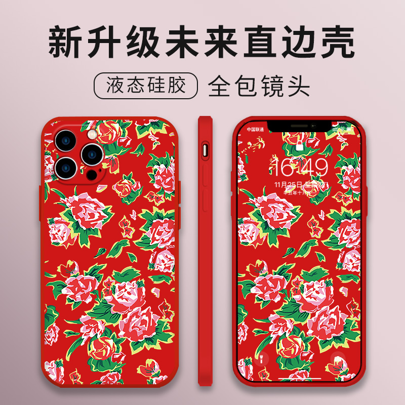 东北大花布手机壳iPhone15苹果14贺峻霖同款13时团12定制土味适用nova9过年mate40pro华为套小米11时代少年团