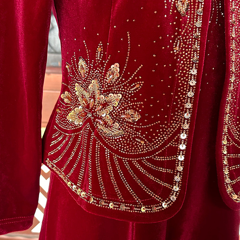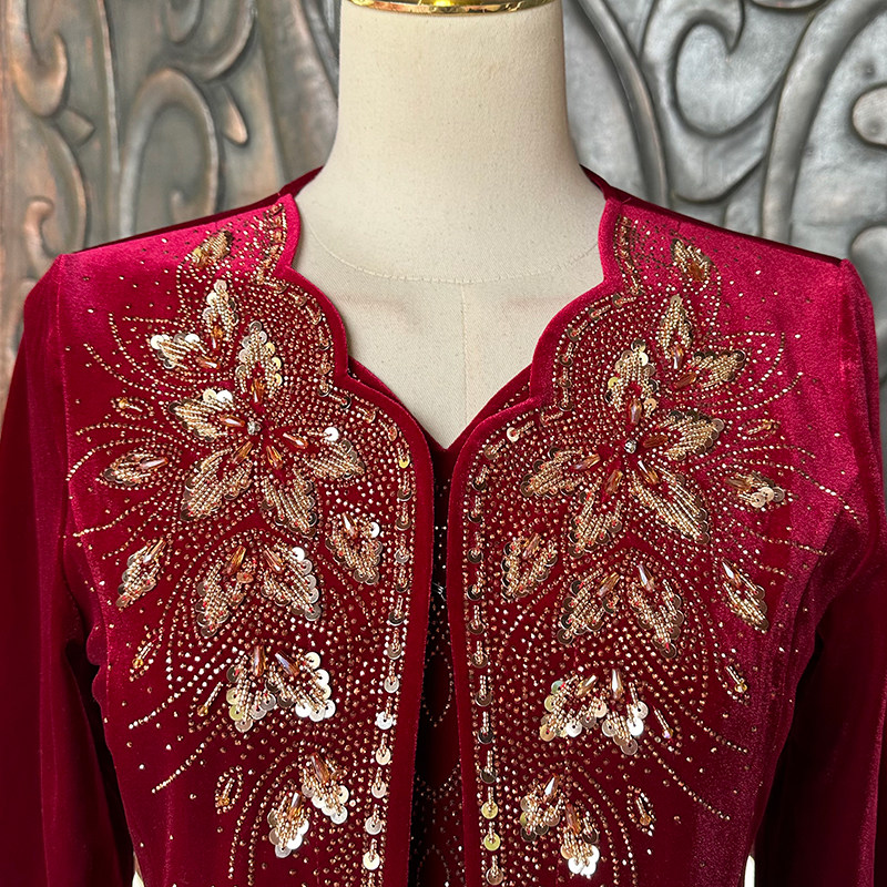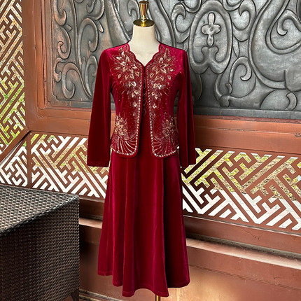高端喜婆婆婚宴装气质优雅中年妈妈结婚礼服金丝绒两件套装连衣裙
