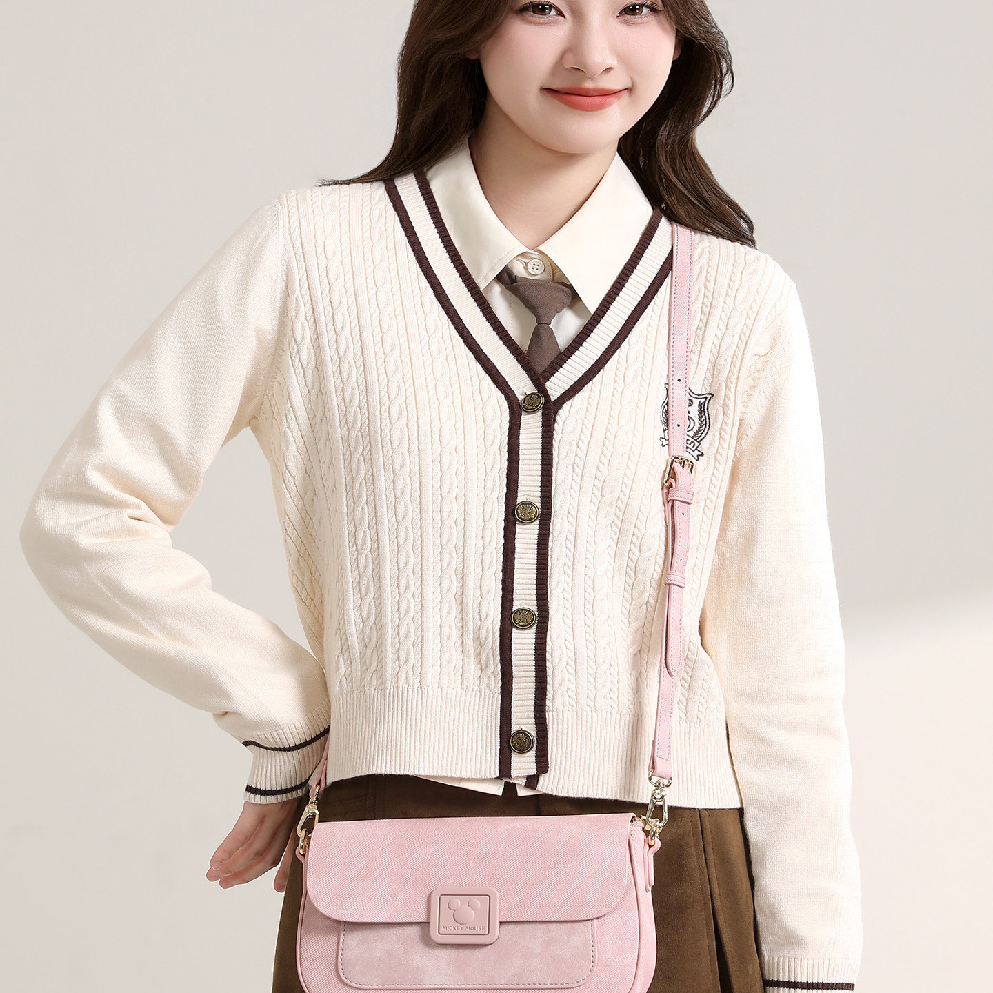 迪士尼官方正品米奇樱花粉云朵时尚百搭女士小众单肩包生日礼物