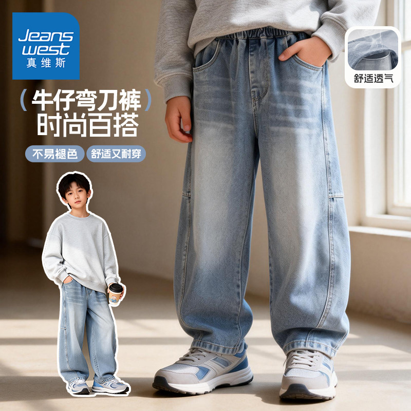 真维斯童装男童牛仔裤春秋款2026新款时髦弯刀裤儿童春季休闲裤子