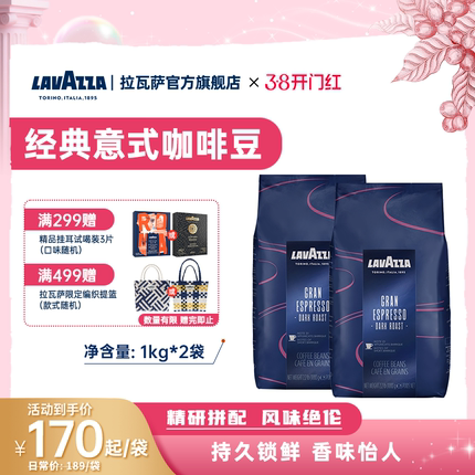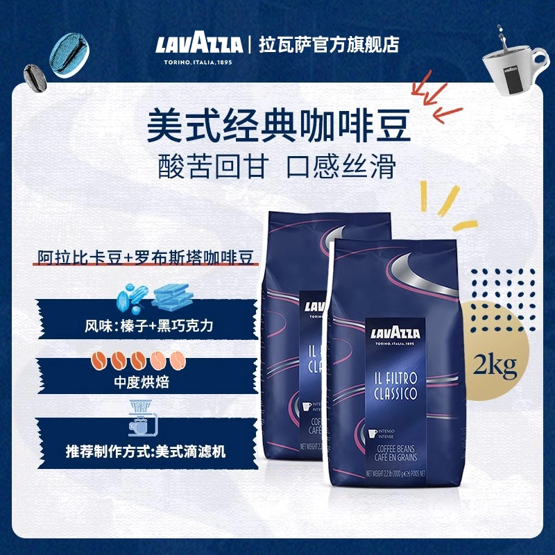 LAVAZZA拉瓦萨进口意式咖啡豆中深烘1KG*2包拼配新鲜手磨送礼优选