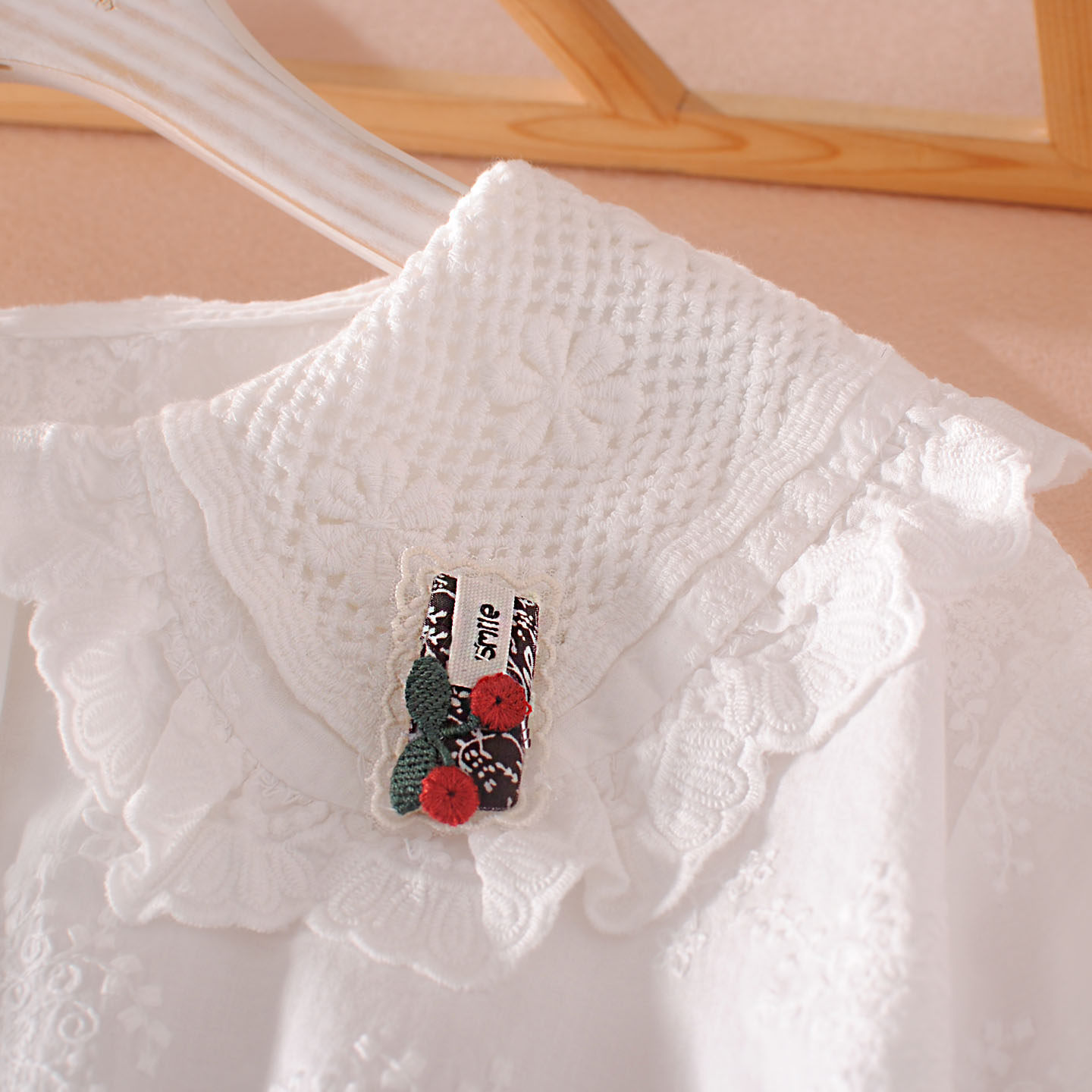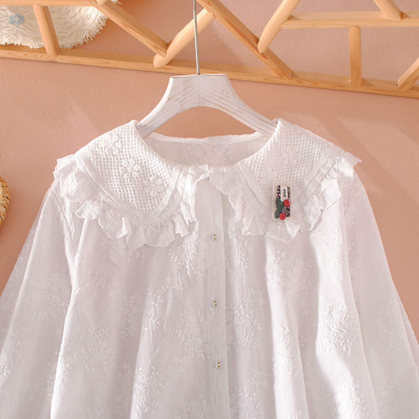 春装文艺刺绣娃娃领纯棉女衬衫