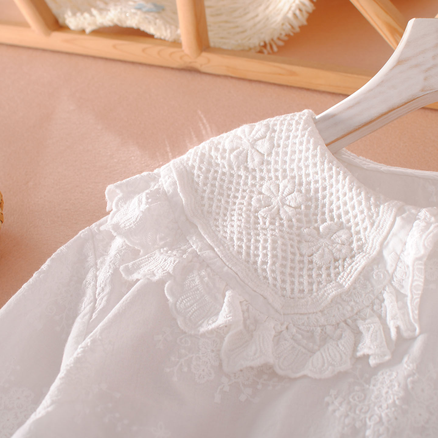 2026春装衬衫女文艺刺绣花娃娃领长袖纯棉上衣白色设计感宽松衬衣