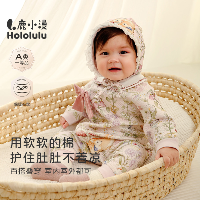 Hololulu女宝宝夹棉连体衣秋冬保暖婴儿秋季薄棉外出可爱哈衣爬服