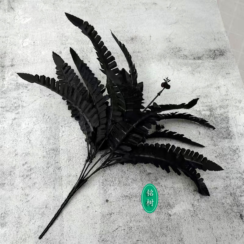 仿真松蕨排草树枝假花雨林盆栽热带道具干花塑料花黑色假草叶
