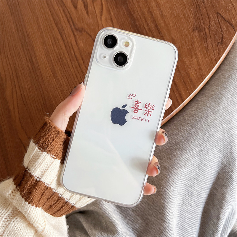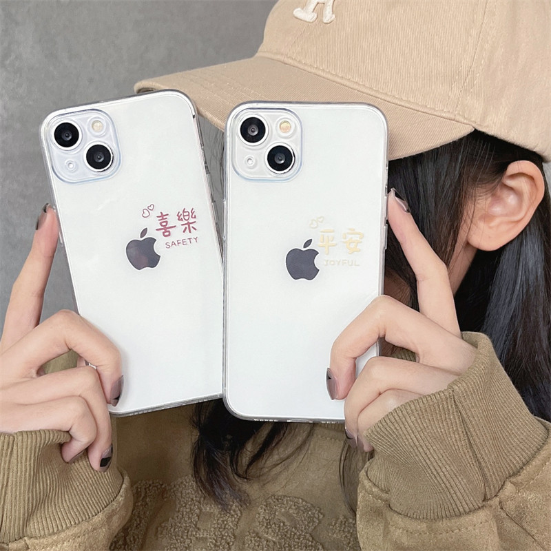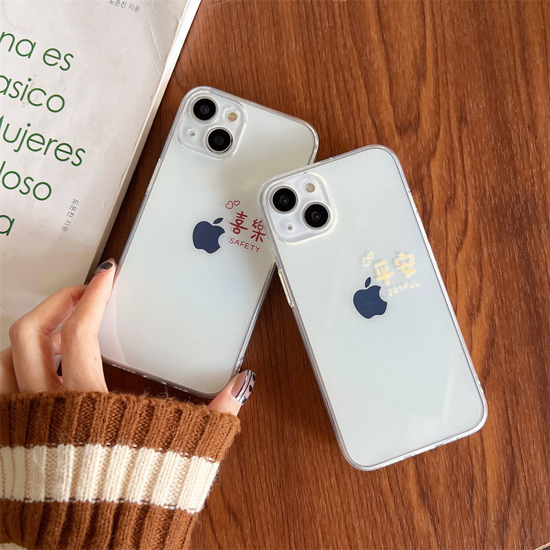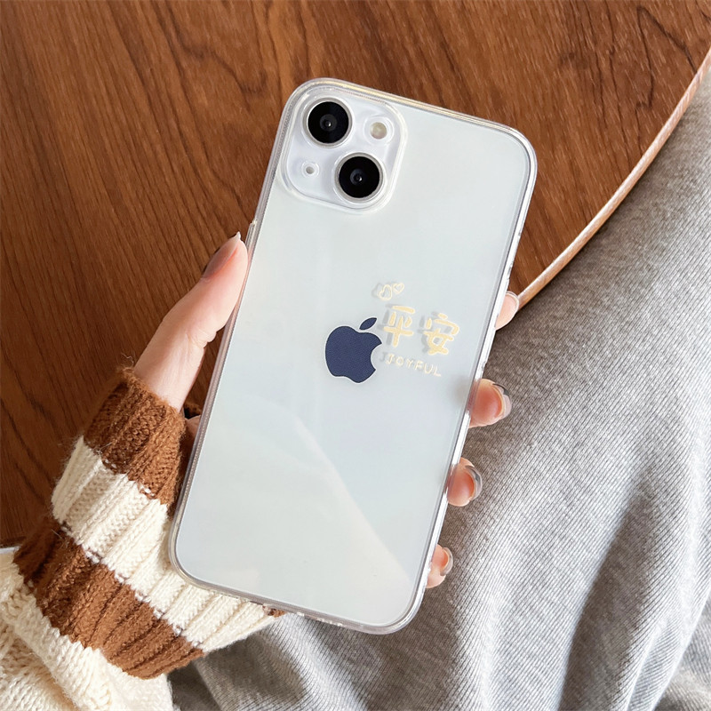 爱心文字平安喜乐适用苹果14promax手机壳透明iPhone13mini女16max防摔壳15外壳男12pro秀恩爱11保护8plus/6s