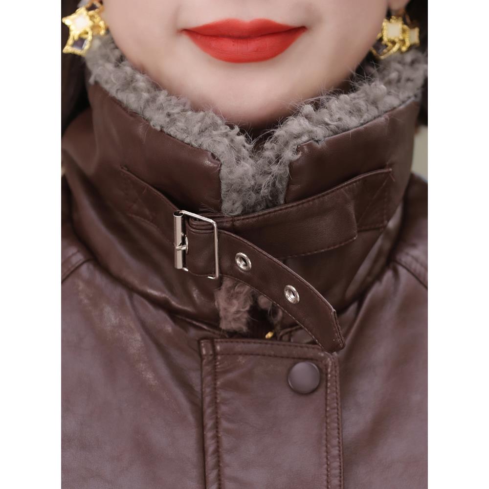 中年女皮衣外套加绒加厚立领妈妈秋冬皮夹克洋气高贵夫人皮毛一体