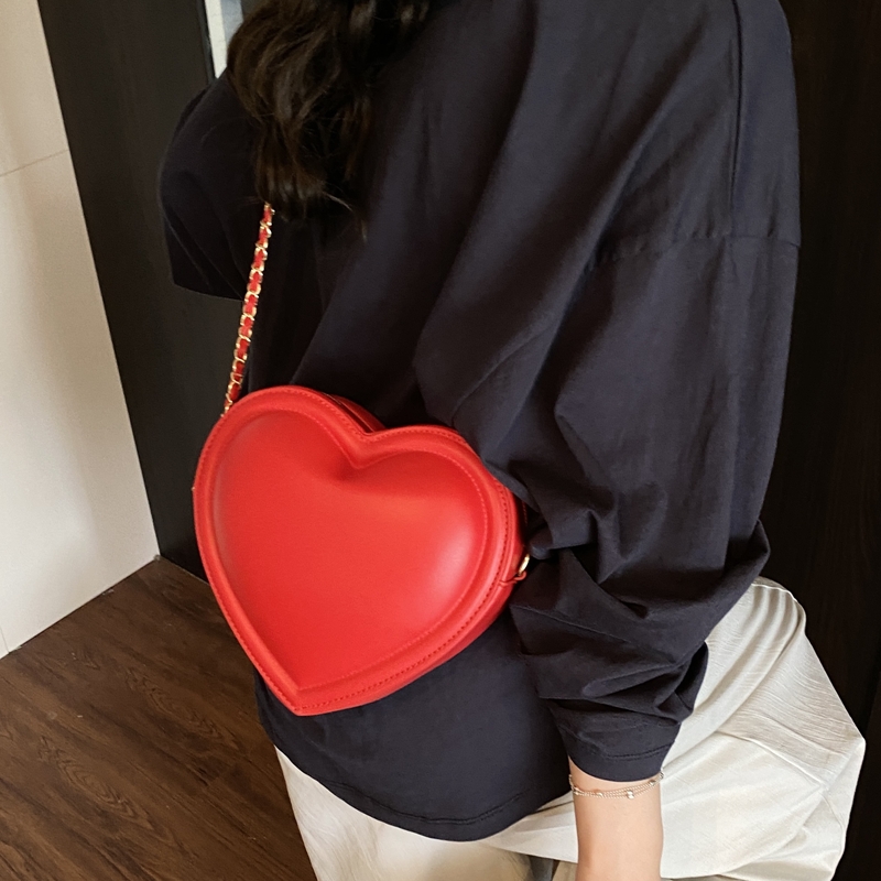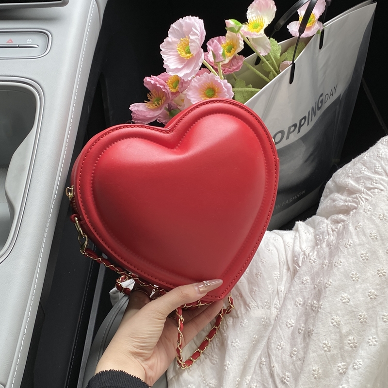 简约红色爱心链条包女款2025新款潮时尚百搭个性斜挎包婚包新娘包