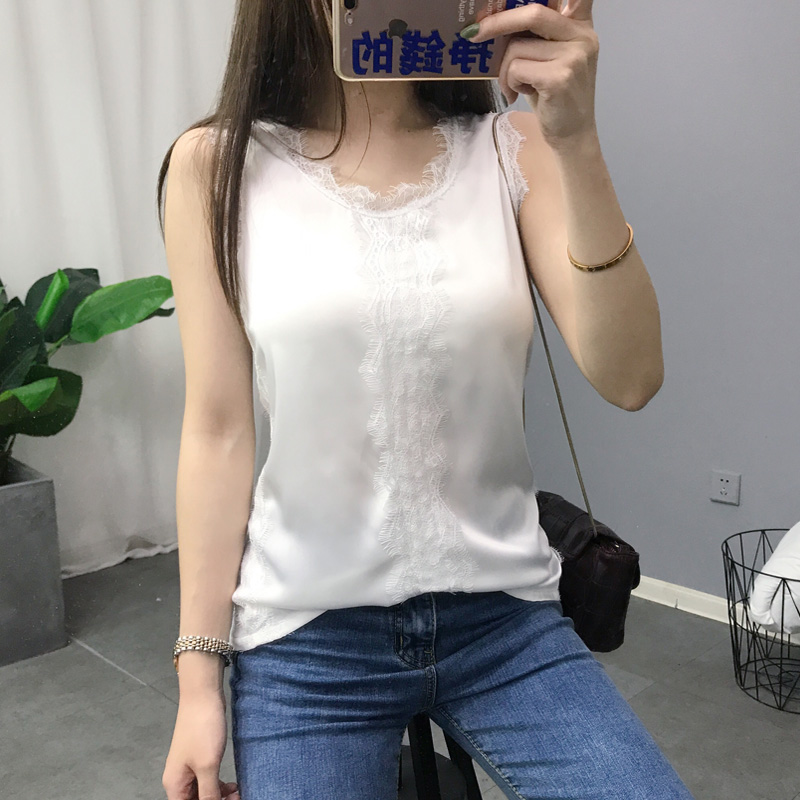 夏季新款外穿宽松打底蕾丝上衣女桑蚕丝内搭真丝背心丝绸缎面吊带