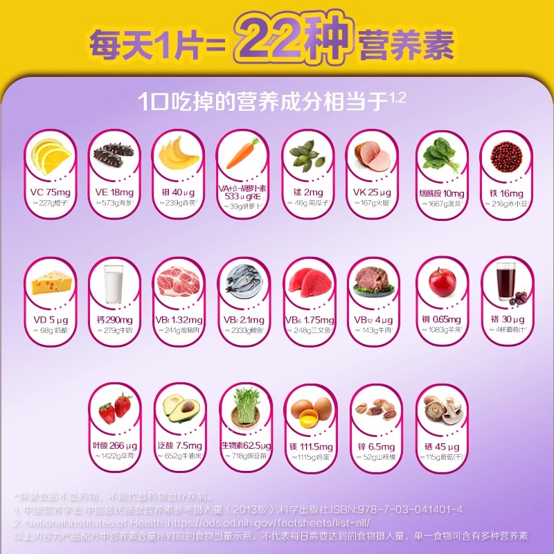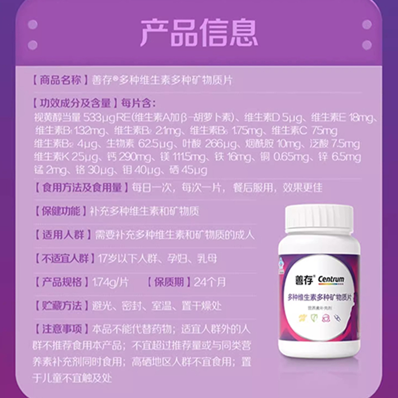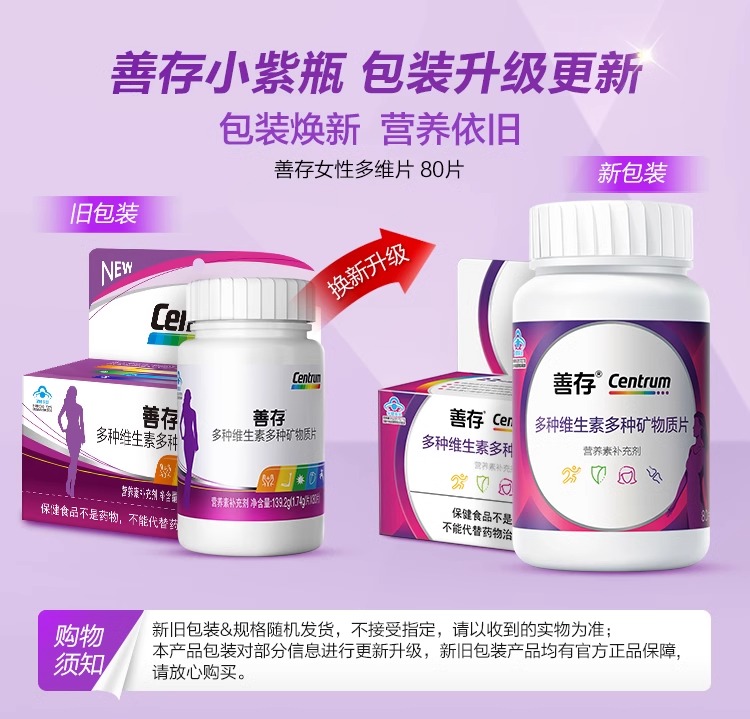 善存小紫瓶女士复合维生素22种营养b族80片va含钙烟酰胺vc维生素c