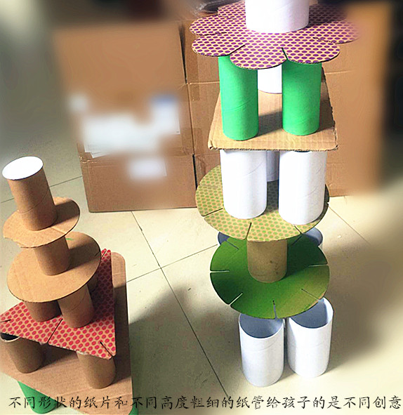 纸芯筒纸管子瓦楞纸片幼儿园DIY低结构材料美工绘画搭建垒高手工