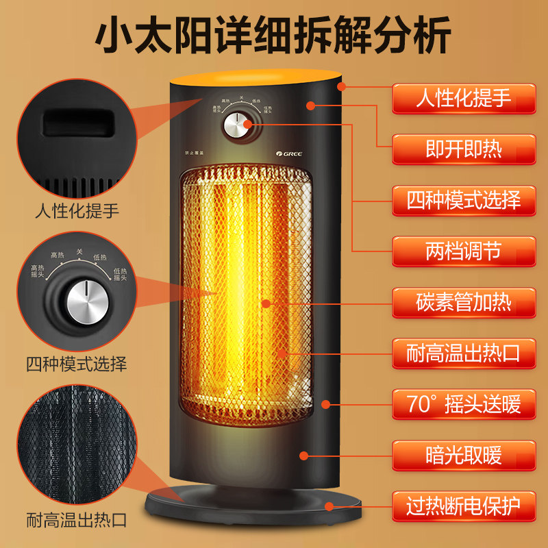 格力小太阳远红外取暖器小型暖脚家用节能速热立式台式电暖器摇头