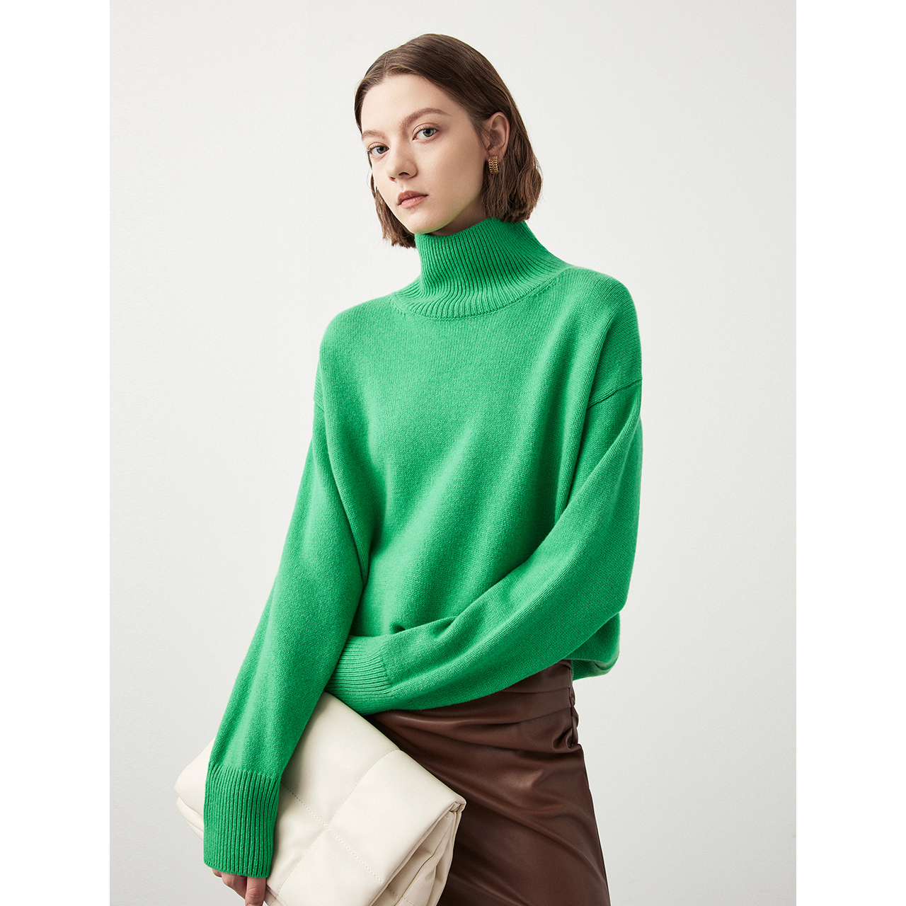 朗姿纯羊毛气质高领内搭毛衣长袖打底设计感上衣冬季新款毛针织衫