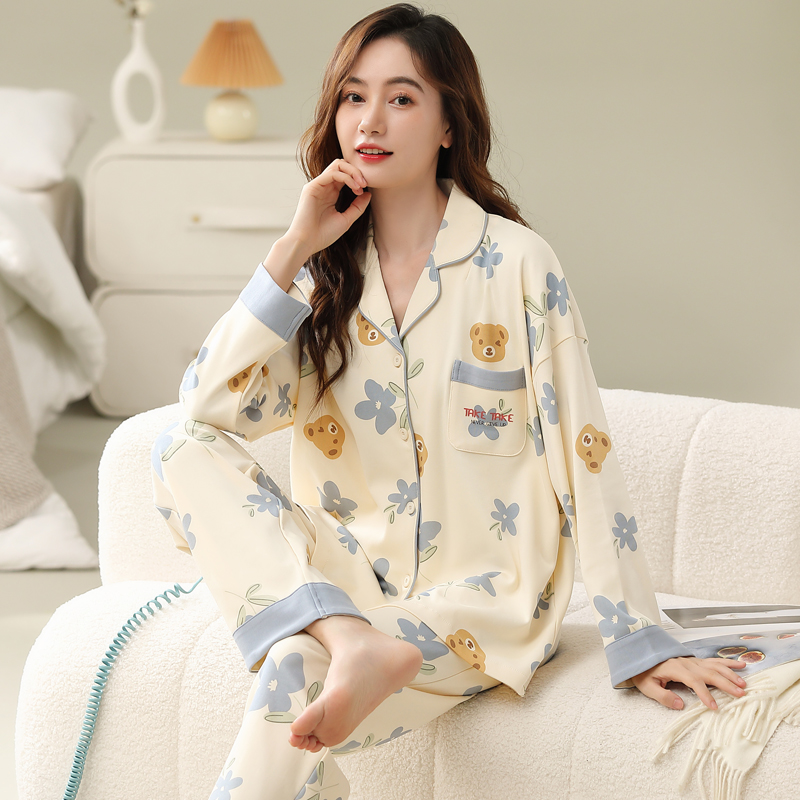睡衣女款休闲春秋季大码开衫长袖可外穿套装韩版宽松夏冬天家居服