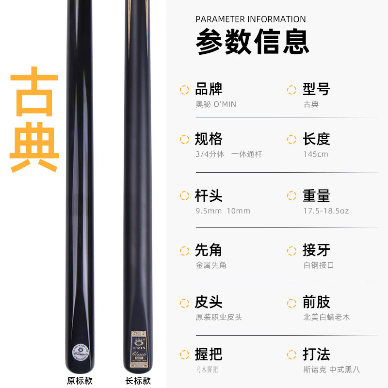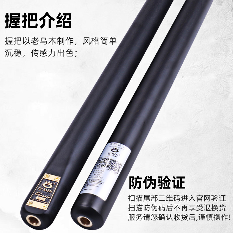 OMIN古典台球杆小头通杆斯诺克球杆中式分体黑八杆手工桌球杆